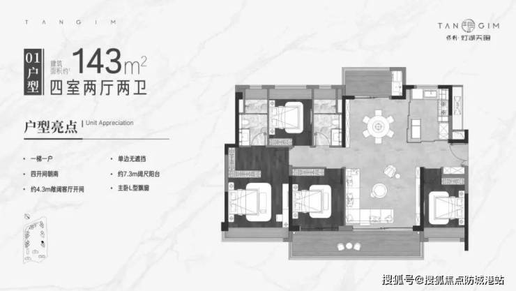 亮点:户型方正,南北通透,通风采光极佳,适合追求更高生活质量的家庭。部分户型享有独梯独户设计,尊贵私密感十足。
