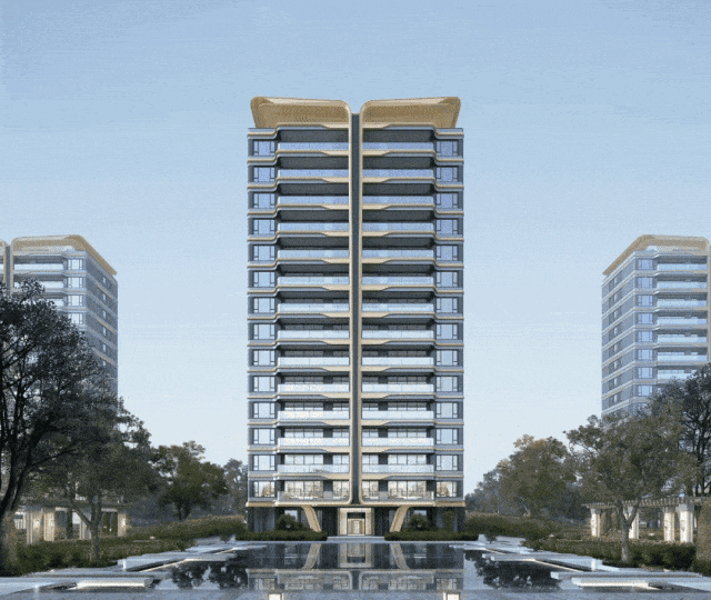 39栋17层纯板式小高层,南北通透布局,户户朝南,采光通风优于传统塔式住宅。**2梯2户专梯专户**设计,电梯厅私属使用,相当于入户花园,提升得房率与私密性。外立面采用大量曲线圆弧+金属铝板材质,阳光照射下呈现温润质感,兼具美学与耐用性,成为区域地标建筑。户型标配3.1-3.3米奢阔层高、全景落地窗、270°观景飘窗,最大化引入自然景观与光线。