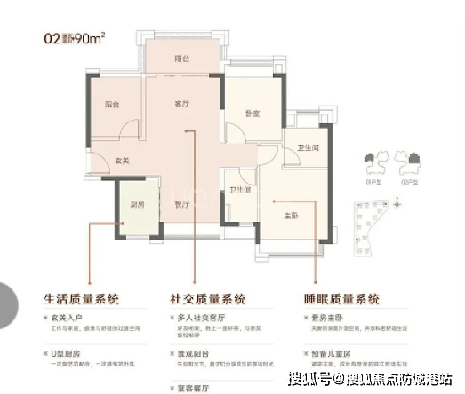 具体来看,90㎡做三房两卫,这在市场上并不多见。通常这个面积段只能做到两房或者紧凑三房一卫。该项目通过巧妙的设计,将空间利用率发挥到了极致,不仅有三个卧室,还配备了两个卫生间,彻底解决了早高峰“抢厕所”的尴尬,特别适合有二胎家庭或者与老人同住的家庭。每个房间的开间和进深比例协调,采光面充足,几乎没有暗房。公摊率较低,得房率高,这意味着你花同样的钱,买到的实际使用面积更多,性价比极高。