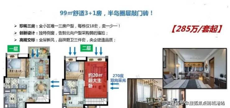 ②高增值复式:建面约99-127㎡精装三至四房,270°三面采光,创新侧窗设计户内自然通风,紧凑三房、全南向四房