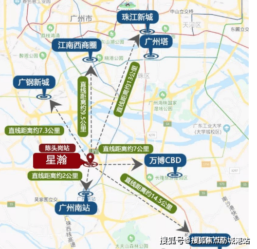 除了地铁出行,项目的自驾交通同样便捷。2023 年 9 月全线贯通的南大干线紧邻项目,从星瀚 TOD 出发,前往万博商圈仅需 11 分钟车程,一路畅通无阻。同时,项目距离 2 号线会江站约 1.2 公里,自驾 3 站即可抵达海珠区,直通越秀、白云等区域,满足业主多样化的出行需求。