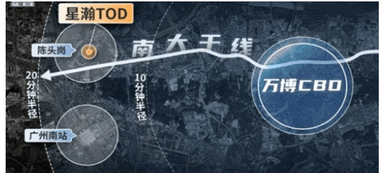 越秀・星瀚 TOD 位于番禺区西部边陲,隶属泛广州南站板块,占据板块核心发展区位,尽享 TOD 模式带来的交通红利。
