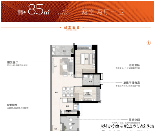 85㎡户型为 2+1 房设计,空间布局紧凑实用,客厅连接观景阳台,采光通风效果好;主卧为套房设计,配备独立卫生间,保障了主人的私密性;次卧和书房面积适中,可根据家庭需求改造成儿童房或老人房。