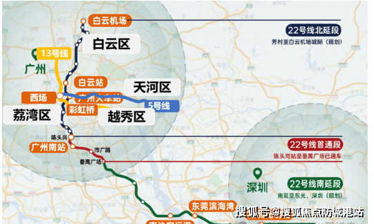 答:项目为 22 号线陈头岗站地铁上盖,可换乘多条线路通达全城。22 号线北延段正在建设中,未来通车后可直达白鹅潭商圈,进一步提升交通便利性。同时,项目紧邻南大干线,自驾出行便捷。