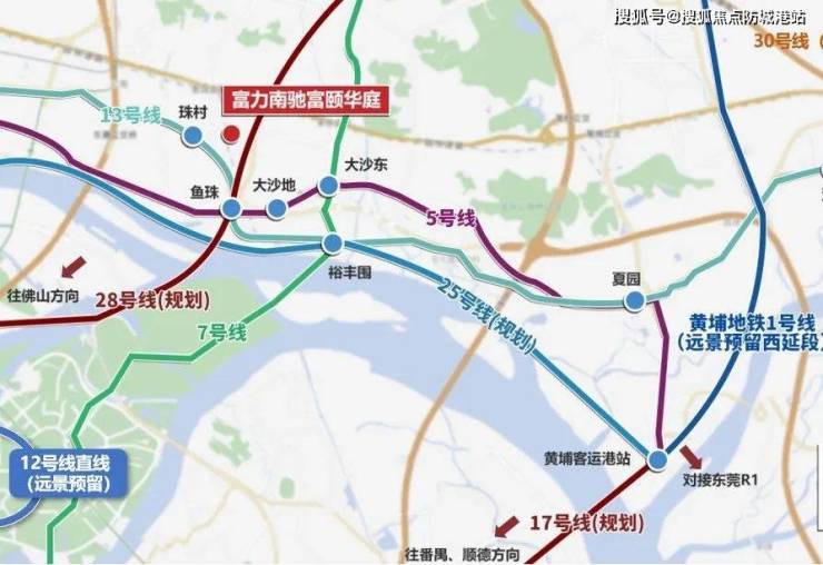 从项目出发,经由5号线、13号线和28号线(规划)的交汇站鱼珠站,8站可到达珠江新城CBD,沿途有鱼珠商圈、天河城商圈等;