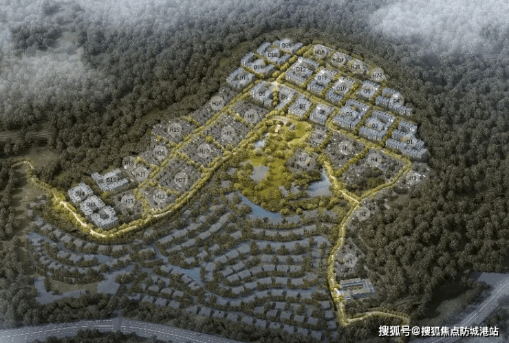整个社区规划22栋合院、20栋叠墅,建筑依山势层层退台,前后楼栋高差达3-6米,确保每一户都能拥有无遮挡的山景视野和良好的通风采光条件。低密度、高绿化、宽间距,共同构筑了一个静谧、健康、尊贵的山居生活圈。