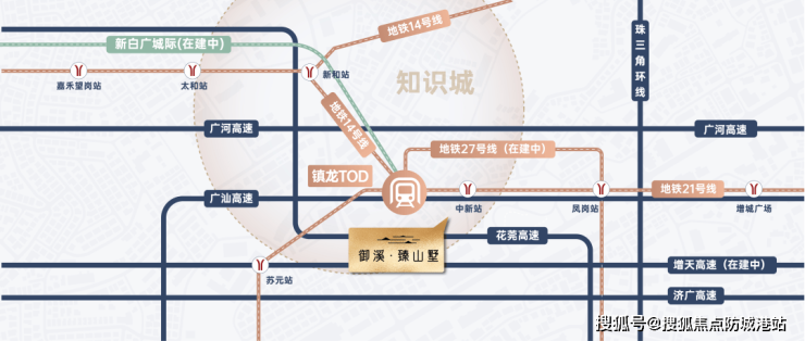 【御溪臻山墅】所在的中新镇,正处于广州“东进”战略的重要节点。随着中新知识城的加速发展,区域产业、人口、基建全面提速。