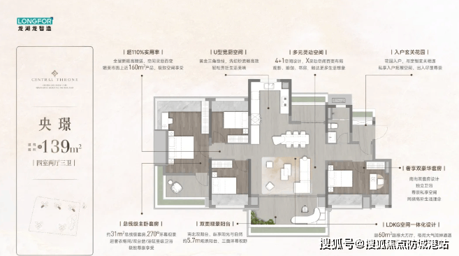 139㎡:南北双阳台对流设计,揽园林瞰珠江景,双套房设计满足高端需求。