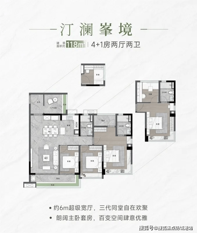约118㎡ 4+1房2厅2卫:三代同堂首选,奢享阔绰空间