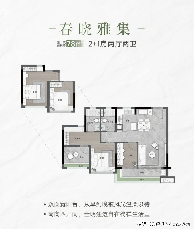 约78㎡ 2+1房2厅2卫:刚需上车首选,小面积大作为