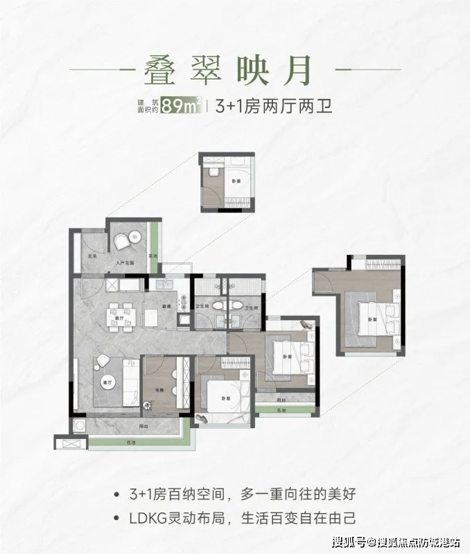 约89㎡ 3+1房2厅2卫:全能三房,适配三口之家