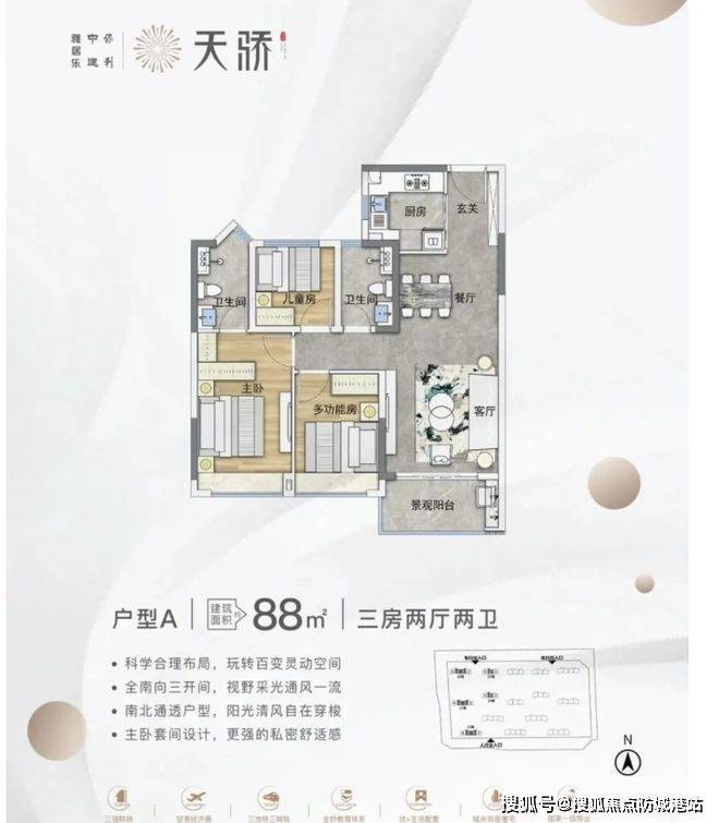 户型设计以实用为主。主力户型为 88 - 110㎡三至四房,方正实用,部分户型带景观阳台或飘窗,空间布局合理,满足不同家庭需求。不过,由于板楼设计及风雨连廊计入公摊,部分户型得房率相对较低,像 110㎡户型公摊较大,实际使用面积可能低于预期。但整体的户型设计注重采光通风和居住舒适度,全南向设计与南北通透的格局,提升了居住体验。