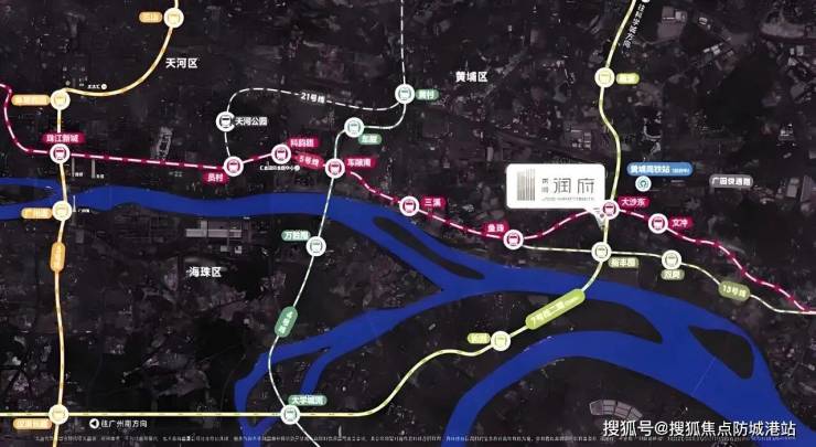 交通是城市的血脉,也是衡量地段价值的重要标尺。华润黄埔润府最大的亮点之一,便是其“双地铁上盖”的优越交通条件。项目距离地铁5号线与7号线换乘站大沙东站仅三百至四百米,步行五分钟即可到达。这种“出门即地铁”的便捷体验,在现代都市生活中显得尤为珍贵。5号线作为广州的东西向大动脉,贯穿了越秀、天河、黄埔三大核心区,直达珠江新城、员村、科韵路等金融与科技重镇。对于在珠江新城工作的白领而言,乘坐5号线可以无缝衔接,轻松实现职住平衡,将通勤时间压缩到最短,从而拥有更多的时间陪伴家人或享受生活。