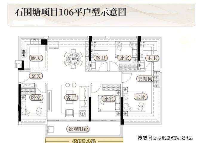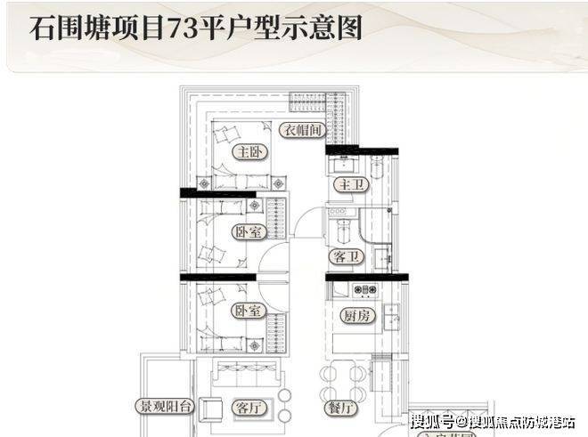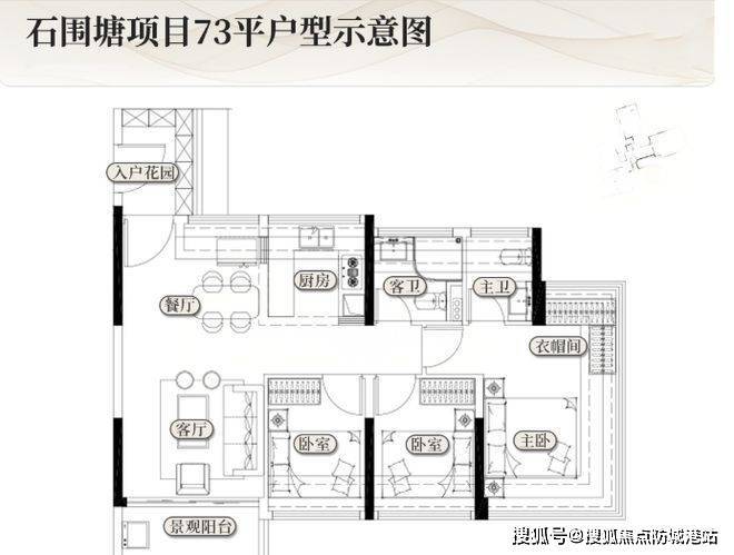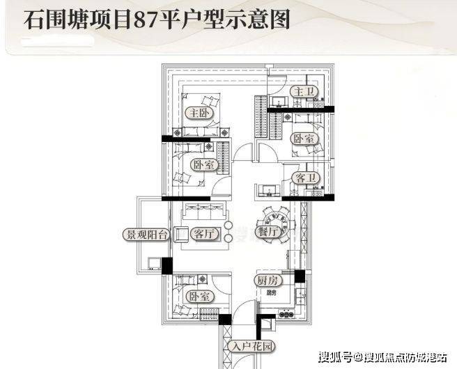 项目宗地面积 9007.07㎡,容积率≤3.0,建筑控高 80 米,建筑面积≤23522.67㎡ 。规划 2 栋 26 层住宅楼,采用两梯五户设计,总货量预计 250 套。户型涵盖约 73 平三房、87 平四房、106 平四房,空间使用率 110% 起步,最高可达 120%,充分保障居住空间的宽敞与舒适。从石围塘效果图可见,地块建筑按梯次整体抬高,独具匠心。
