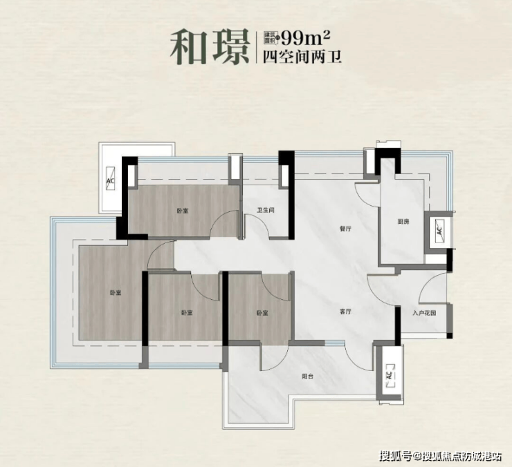 南区标准层:靠近地铁口与商业广场,楼间距更开阔,居住私密性、舒适度更高,适合依赖地铁通勤的年轻夫妻、单身贵族;户型设计兼顾实用性与舒适性,主卧带飘窗、客餐厅连通阳台,采光面充足,居住体验通透敞亮。