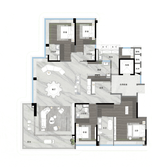 1. 140㎡四房两厅三卫(南向)