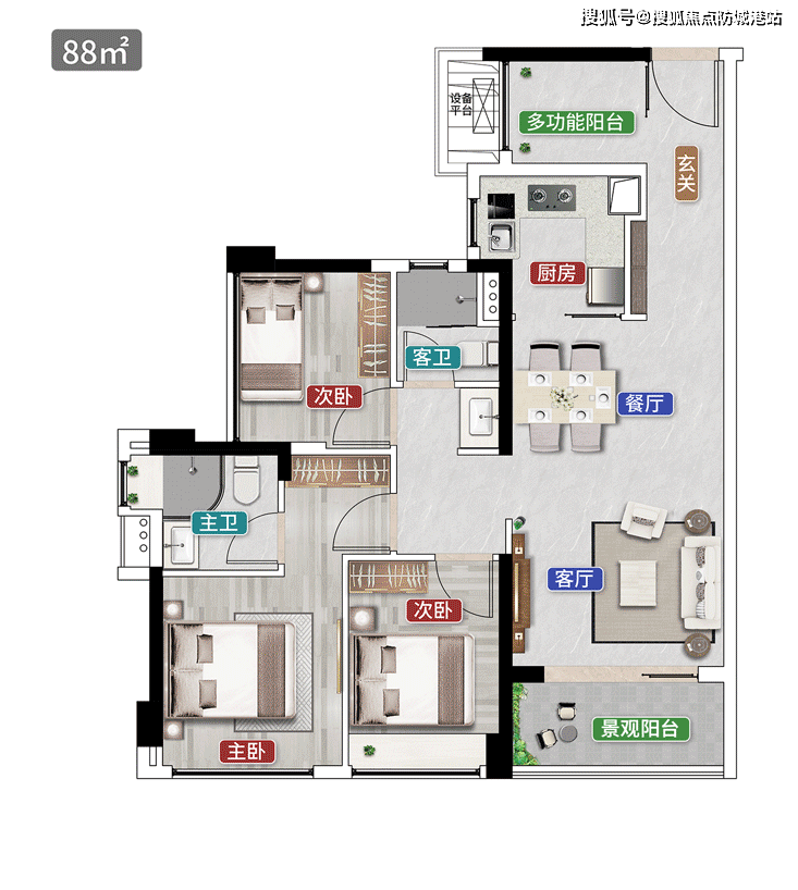户型创新:同等面积多一房(如88㎡做3+1房),阳台宽度最高达7.2米。