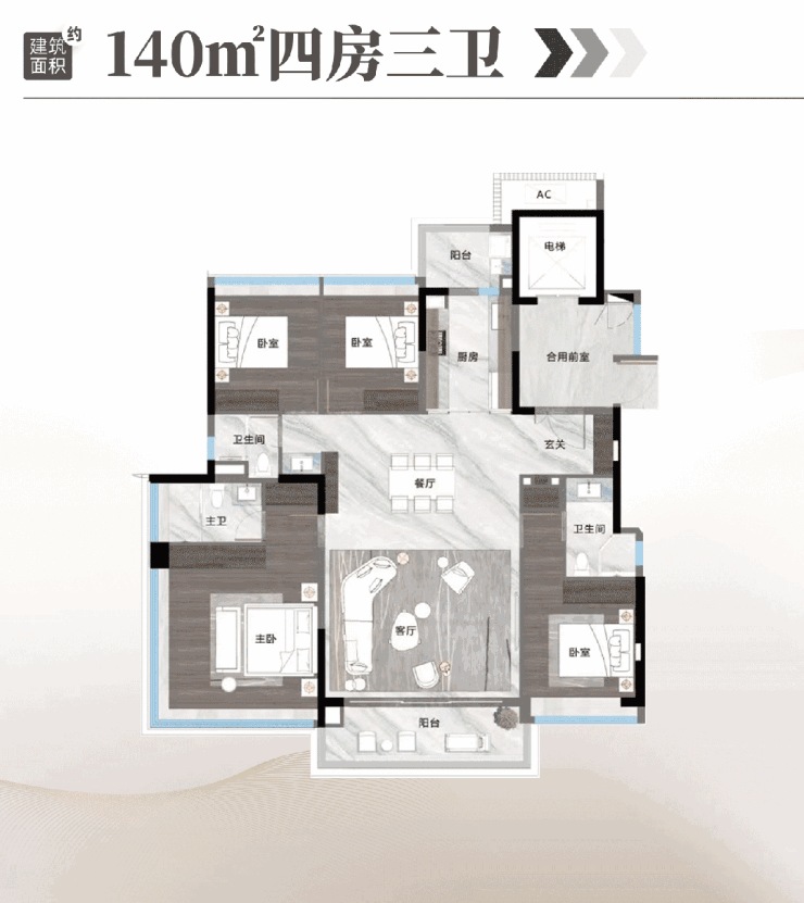 大平层产品锁定改善客群,总价门槛过滤圈层,社区私密性极强。