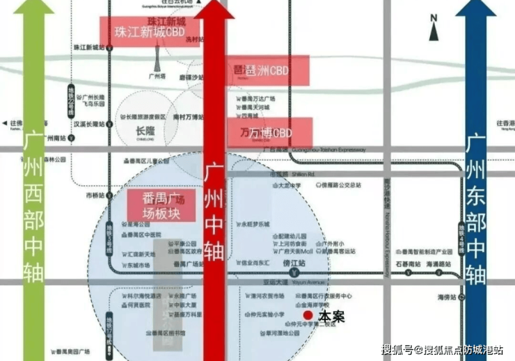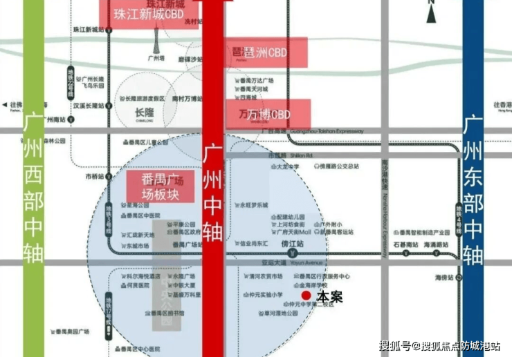项目位于番禺广场板块,为广州新中轴枢纽