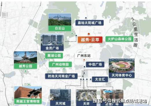 越秀·云萃坐落于广州中轴之上,地处白云京溪板块核心区域,与天河区一路之隔,直线距离珠江新城仅5公里,尽享CBD繁华辐射,同时坐拥白云山生态资源,实现“繁华与静谧兼得”的理想区位优势。