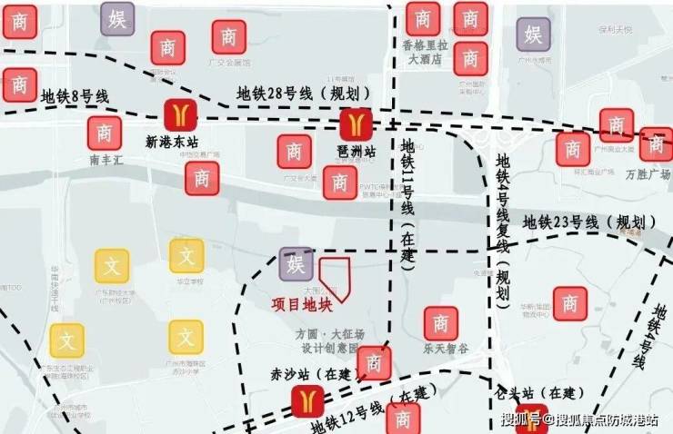 交通条件:距离地铁8号线和11号线的琶洲站约900米,周边直线1公里内有14个公交站,还有多条主干道,交通便捷。