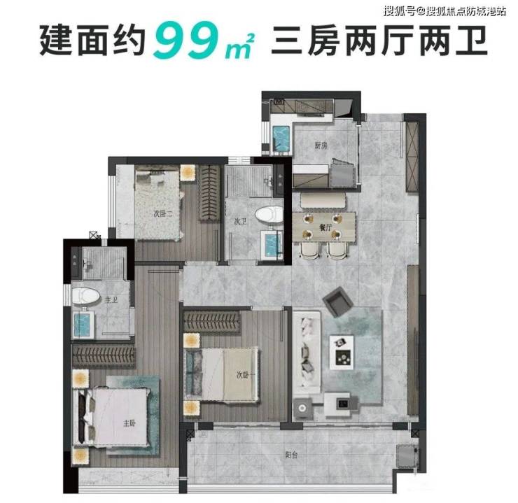 这样配置的原因,应该是90多㎡在岛上竞争比较大,刚需、刚改盘都有配置,货量太多不方便出货,但要保证低总价门槛走量,所以面积没有直接拉到100+。
