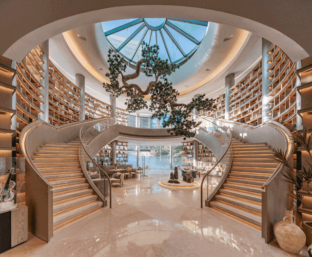 会所内配套齐全,既有常见的恒温泳池、健身房、普拉提室,满足业主的日常运动健身需求;还有圈层专属配套,比如红酒雪茄吧、保龄球馆、室内篮球羽球混合馆、高尔夫练习室等,为业主提供高端的社交与休闲空间。此外,项目还打造了独特的禅意园林,采用“四谷三庭”的空间布局,不像传统豪宅园林那样“扁平”,而是非常立体。