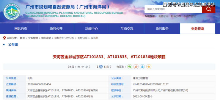 2022年8月10日,广州版“深圳湾壹号”,规划正式获批,没错,就是鹏瑞金融城项目,天河区金融城东区AT101833地块。