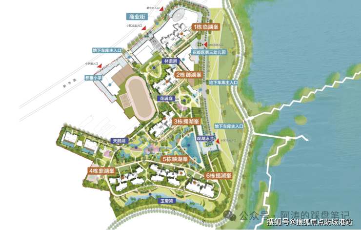 项目拥有花都湖板块稀缺的一线临湖资源,紧邻 4300 亩花都湖国家湿地公园,部分户型可实现 270° 南向望湖,湖景视野无遮挡,生态居住环境优越。花都湖国家湿地公园作为城市核心区稀缺的生态资源,涵盖湖泊、湿地、绿植、休闲步道等多重生态景观,是业主日常休闲、健身、散步的天然氧吧。项目采用科学楼栋布局,部分户型设计为南向全幕瞰湖,270° 环幕视野,将 4300 亩湖景纳入居家视野,实现 “推窗见湖、出门入园” 的湖居生活体验。社区内部规划约 5.2 万㎡叠水园林、6 千米临湖健康绿道,与外部花都湖湿地公园形成 “内园外湖” 的双重生态体系,绿化率高达 44.8%,远超广州普通住宅社区绿化标准,为业主打造生态宜居的居住环境,满足改善型家庭对居住品质的极致追求。