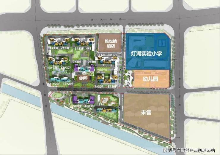 24栋高端住宅、24班南实灯湖实验小学、18班清风幼儿园、规划超133亩竹基湖