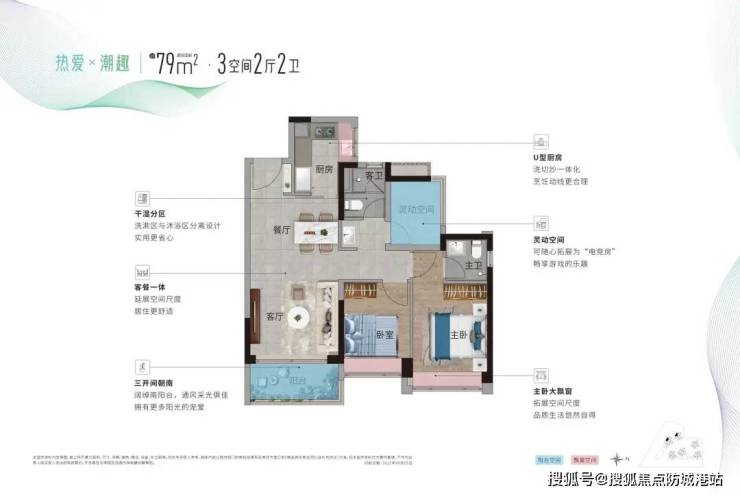 建面约79㎡ 3空间2厅2卫