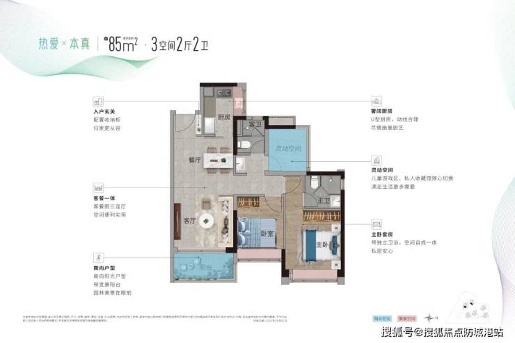 建面约85㎡ 3空间2厅2卫