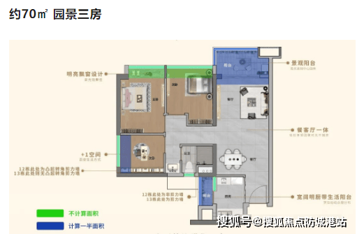 约70㎡ 园景三房:适合小家庭居住,布局合理。