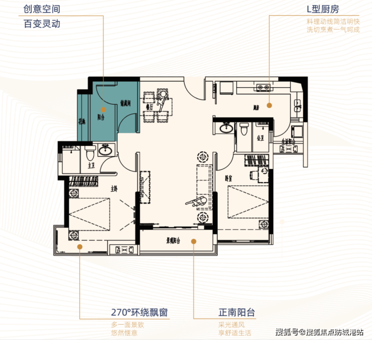 91㎡南向阳光2+1房:适合小家庭居住,设计紧凑实用,采光充足。