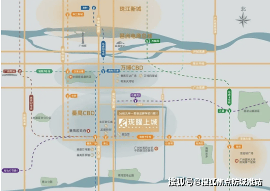 项目坐落于番禺广州新城核心区域,紧邻亚运大道,地理位置优越,享受板块发展红利。作为TOD项目,交通配套是珑曜上城的核心竞争力,项目距离地铁3号线延长线石基南站仅约500米,步行5-8分钟即可抵达,为业主日常出行提供极大便利。