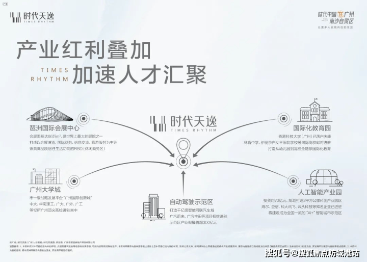 时代天逸虽未处于传统意义上城市核心的主轴,但凭借其在南沙自贸区庆盛板块的卓越区位,在区域发展的关键脉络中占据重要地位,开启了别具一格的瑰丽生活。南沙作为粤港澳几何中心,是承建珠江东、西岸资金、航运、人口交流的重要枢纽,广东省政府投资1300亿建设南沙,投资额是前海与横琴总和的3.2倍,发展迅猛,2020年GDP达1846.11亿元,增速7.1%,位居全区第一。而庆盛枢纽板块作为南沙中轴,更是大湾区重要交通枢纽,广深港高铁与22号线跨城地铁在此交汇,联袂广深港三城资源,同时受广深港科创走廊规划加持,赋能产业发展,新鸿基庆盛枢纽综合体、中国科技大学等重磅项目相继落户,海尔、亚信、科大讯飞等名企云集,引领湾区科创潮流。
