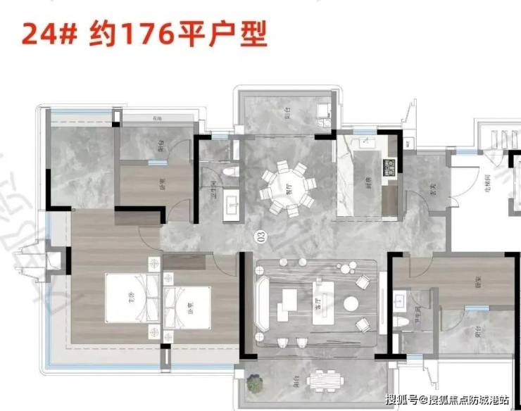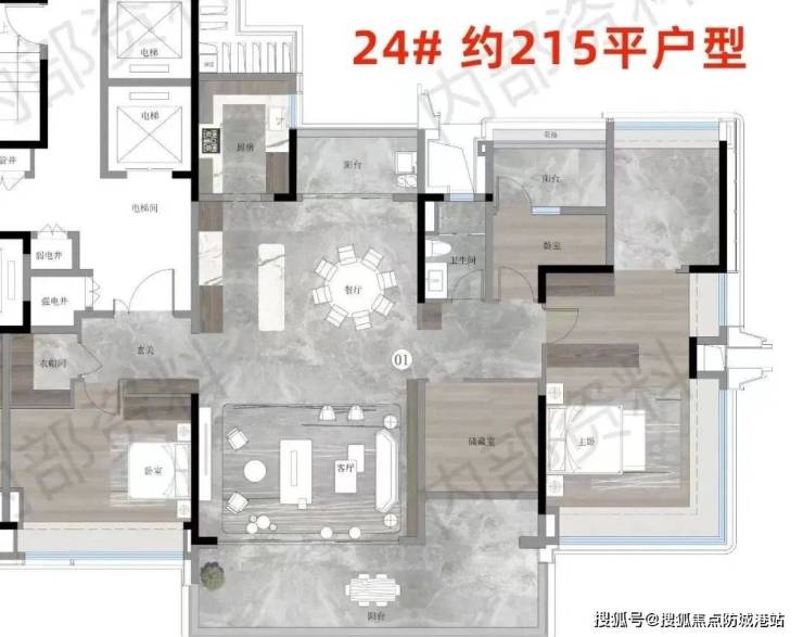 230平户型拥有私家电梯厅、双主套、独立佣人房、南北对流、LDKB大方厅、主卧L型270°飘窗等,大大提升了整体的空间体验。