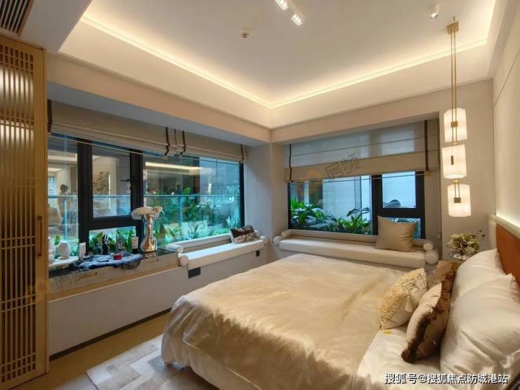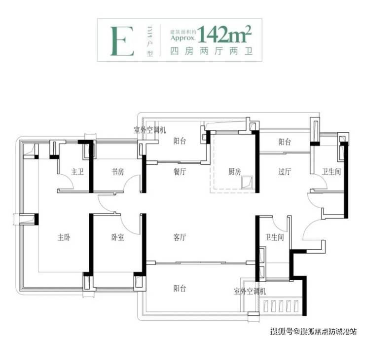 142平四房三卫双主套,甚至做5房也没有问题,瑜伽房、书房或茶室全都能安排上。
