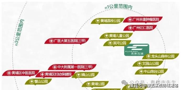 约2公里范围内有中大附属第一医院、广州医科大学附属第五医院(东院区)等优质医疗资源。