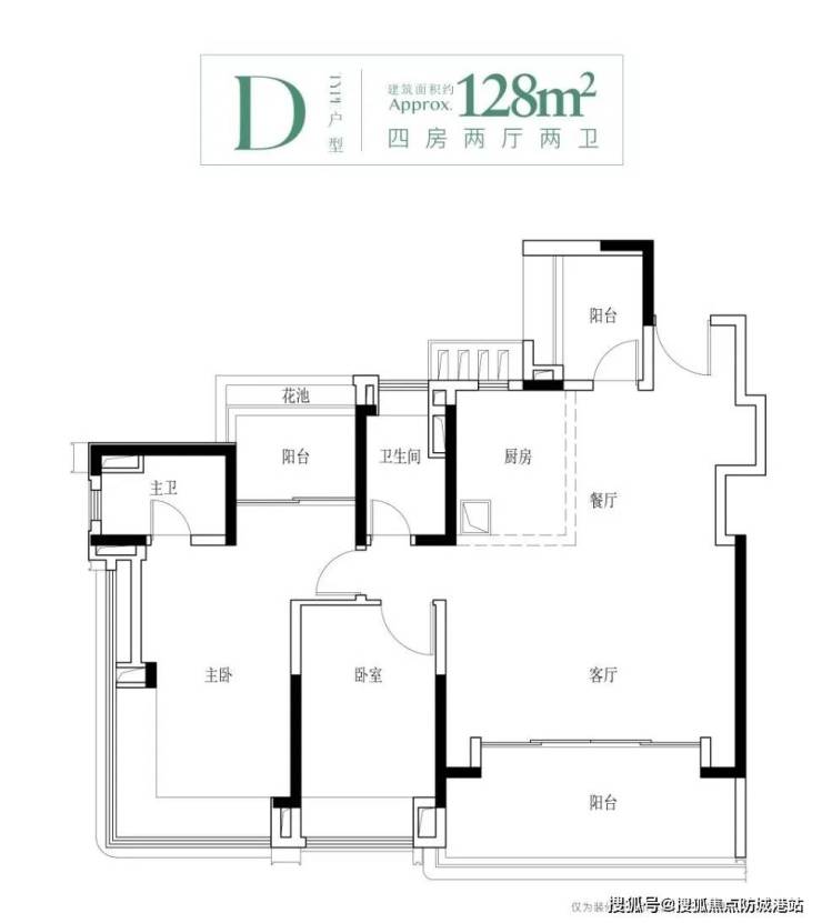 128平四房两厅两卫,首开只有4#有两条梯腿。