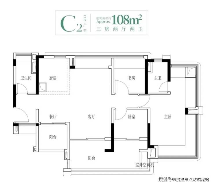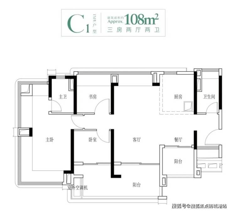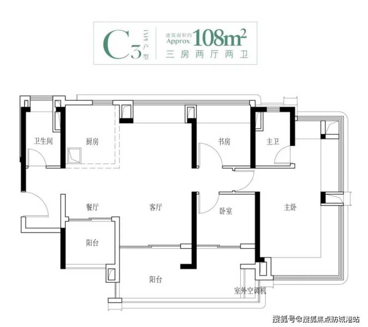 108平有三个户型三条梯腿,格局差别不大,C1(2#03)和C3(4#04)对称,C2(1#05)的承重墙限制少,改造更加灵活。