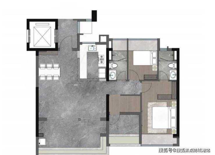 约107㎡全景会所奢宅,四开间朝南,约11.8米面宽,纵享豪宅尺度,LDKB+X通透宽厅,联动约5.9米景观阳台,随心切换,U型厨房,餐厨联动,派对式奢境享受。