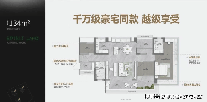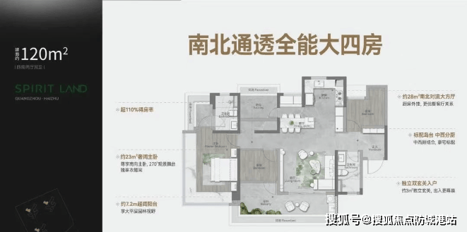 建面约120㎡:四房两厅两卫,南北通透,配备豪宅同款中西分厨设计。