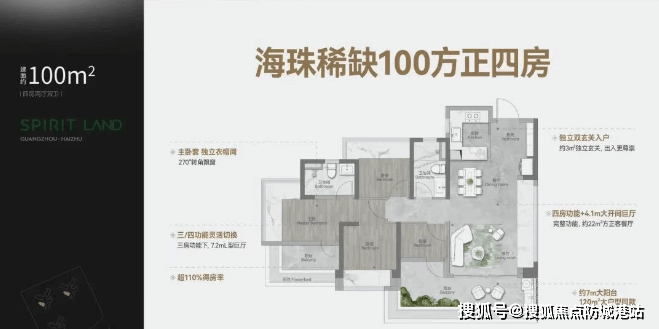 建面约100㎡:四房两厅两卫,是海珠区内唯一在100平方米内实现正四房的户型。