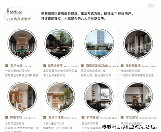 园林内部配套丰富,涵盖多重功能区域:约400㎡酒店式泳池CLUB,池水湛蓝,搭配廊架吧台与休闲躺椅,为业主提供了雅奢度假式的休闲场景;“森林乐园”亲子研学基地,专门设置0-14岁儿童游乐天地,分年龄段规划游乐设施,让不同年龄段的孩子都能在自然中自由玩耍;下沉式庭院参照京都安缦设计,与茂林、叠水深度交织,营造出静谧诗意的休憩空间。