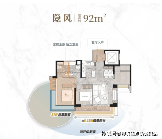 建面约92㎡户型:该户型为刚需首选,设计为四房两卫格局,超高使用率让空间利用率最大化。户型采用奢厅入户设计,营造尊崇归家仪式感,四开间朝南布局,确保室内充足采光与通风。配备约6.15米阔景阳台,连接客厅与次卧,尽揽园林美景与阳光清风;主卧配备270°巨幕飘窗,无垠景观环绕,提升居住质感。整体布局紧凑实用,无浪费空间,满足三口之家或二胎家庭的居住需求。