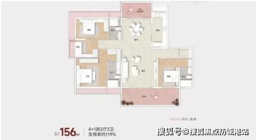 约156平稀缺户型:可扩展成4+1房2厅3卫格局,货量稀缺,仅9套(1条梯腿),属于项目楼王户型。该户型在这个面积段做到了传统大平层才有的双套房设计,在老城区十分罕见,双套房均配备独立卫生间和衣帽间,满足多代同堂家庭的居住需求,保障每个人的私密性;南北双阳台设计,通透性极佳,北阳台可作为生活阳台,用于晾晒、储物,南阳台可作为休闲阳台,观景、休闲两不误;拓展后的功能房可作为书房、儿童游乐室或健身房,灵活适配家庭不同阶段的需求;首创全明全景厨房设计,将窗户尺寸扩大至半墙,采光、通风做到极致,打破传统厨房阴暗潮湿的弊端,操作台面明亮开阔,还能将窗外园林风景引入厨房,让下厨成为愉悦身心的享受。