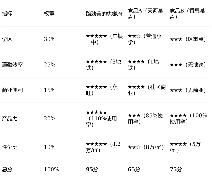 四、全能型住宅价值评分表:路劲美的隽樾府VS竞品,谁更值得买?