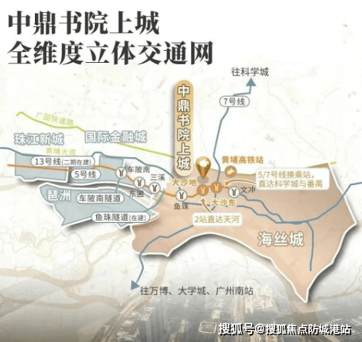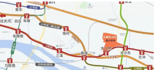 项目距地铁5号线大沙地站约600米,步行8–10分钟可达,无需接驳。5号线为广州东西黄金动脉: