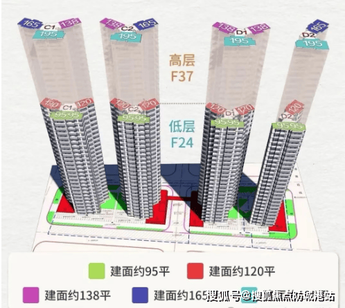 稀缺的南向江景:做高低分区,低区偏改善产品,高区江景大平层,满足不同需求段。